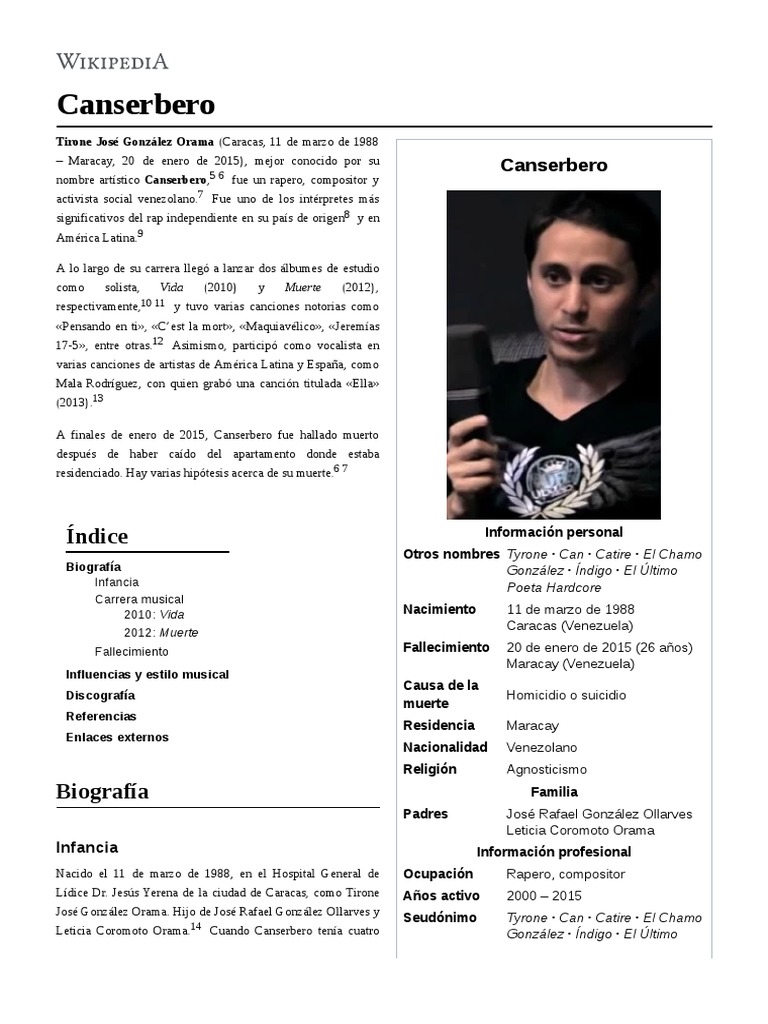 Fallecio Canserbero Asesino A Bajista De Zion Tpl Y Se Suicido Exclusivo Youtube - Tyrone jose gonzalez oramas, mas conocido como canserbero can latinismo de guardian y serbero por la criatura mitologica cerbero, fue un mc y activista originario de caracas, venezuela;