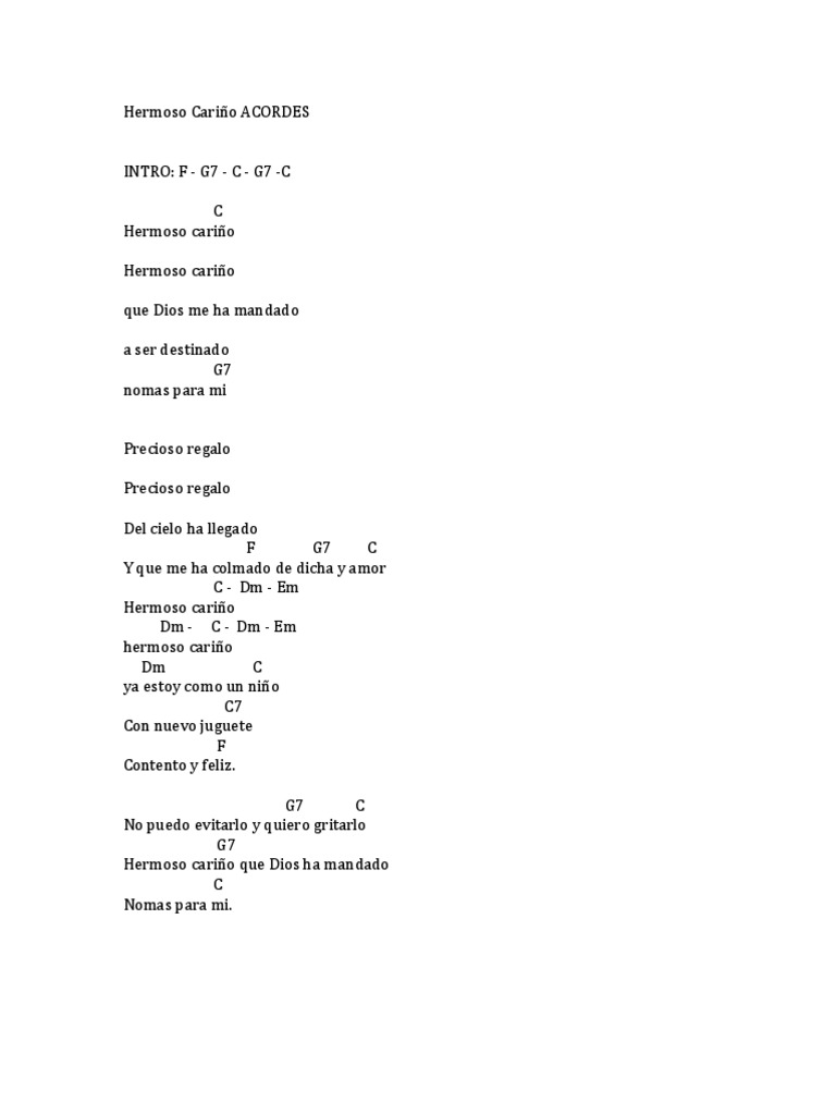 Hermoso Cariño Letra Y Acordes : Hermoso carino hermoso carino que dios me ha mandado a ser destinado nomas para mi precioso regalo precioso regalo del cielo ha llegado y que me ha colmado de dicha y amor hermoso carino hermoso carino ya estoy como un nino con nuevo juguete contento.