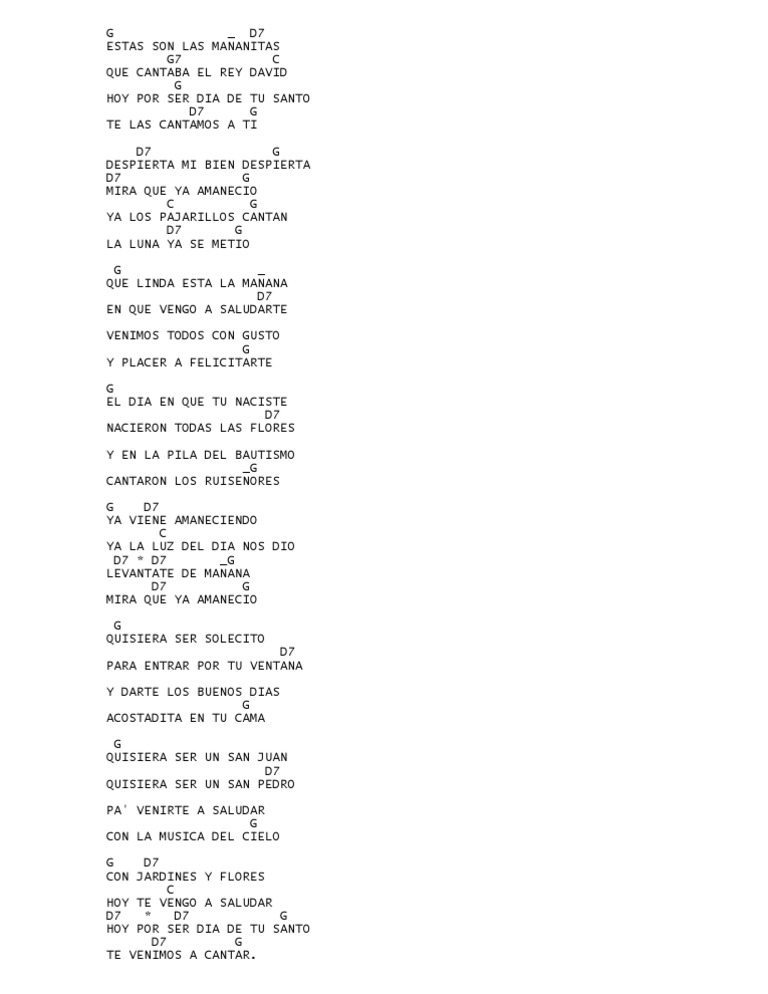 Las Mañanitas Acordes : Otras partituras que podrian interesarte Las Mañanitas Acordes - Sol sol7 do que cantaba el rey david.